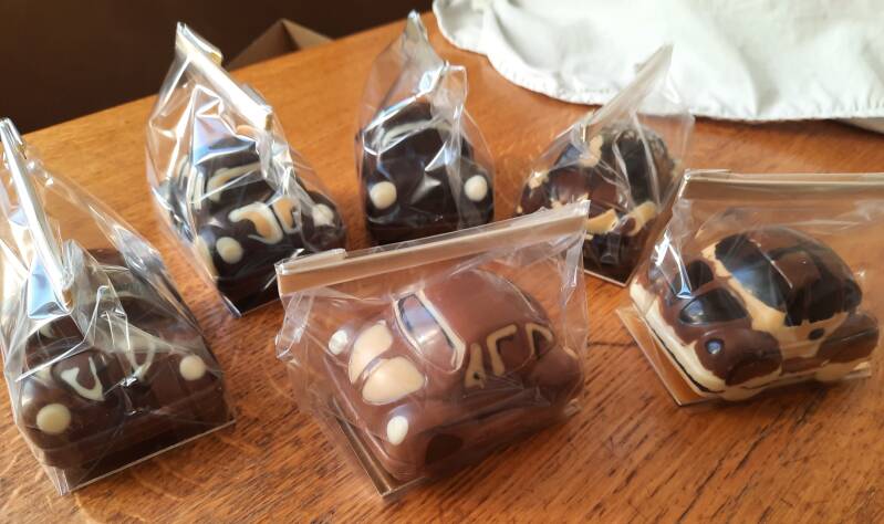 • Motorisierte Schoggifiguren wie Autos, Porsche, Motorräder Rollerchlaus und Autopraliné